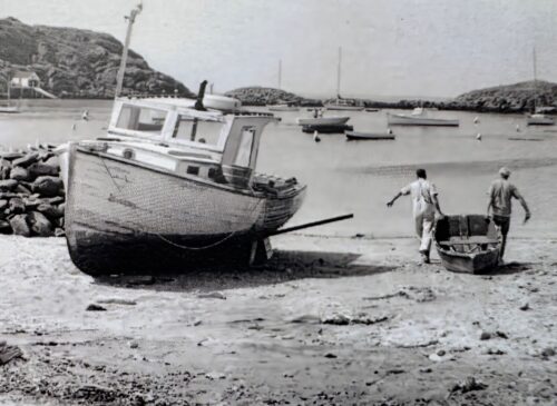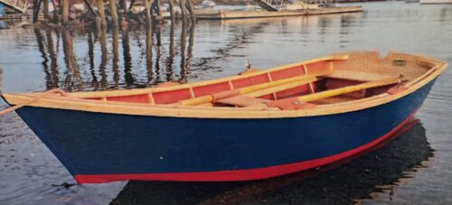 I first laid eyes on a Monhegan Skiff more than fifty years ago. In 1973, my wife Ruth and I moved out to Monhegan Island to become the teachers at the one-room school and the ministers of the island’s Community Church. In our first walk around the island, we were spellbound by the drama of the cliffs. the sanctity of Cathedral Woods, the majesty of Light House Hill. Equally beautiful to me was the assortment of Monhegan skiffs adorning Fish Beach. The island’s fishermen used their rugged little “donkeys of the sea” to row from the rocky shore to their lobster boats moored in the notoriously difficult waters of the island’s harbor. The skiffs were–and still are–vital to Monhegan’s daily, maritime life. I had no idea they would he the genesis of my future vacation, nor that my life and Monhegan skiffs would be entwined for more than half a century.